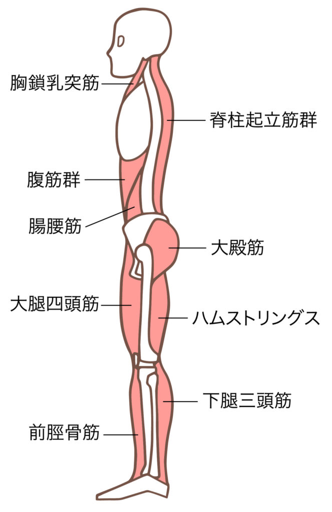 [su_column size="2/3" center="no" class=""]横から見た時の筋肉はこのようになっています。この中でもいい姿勢を保つためのポイントになるのが、