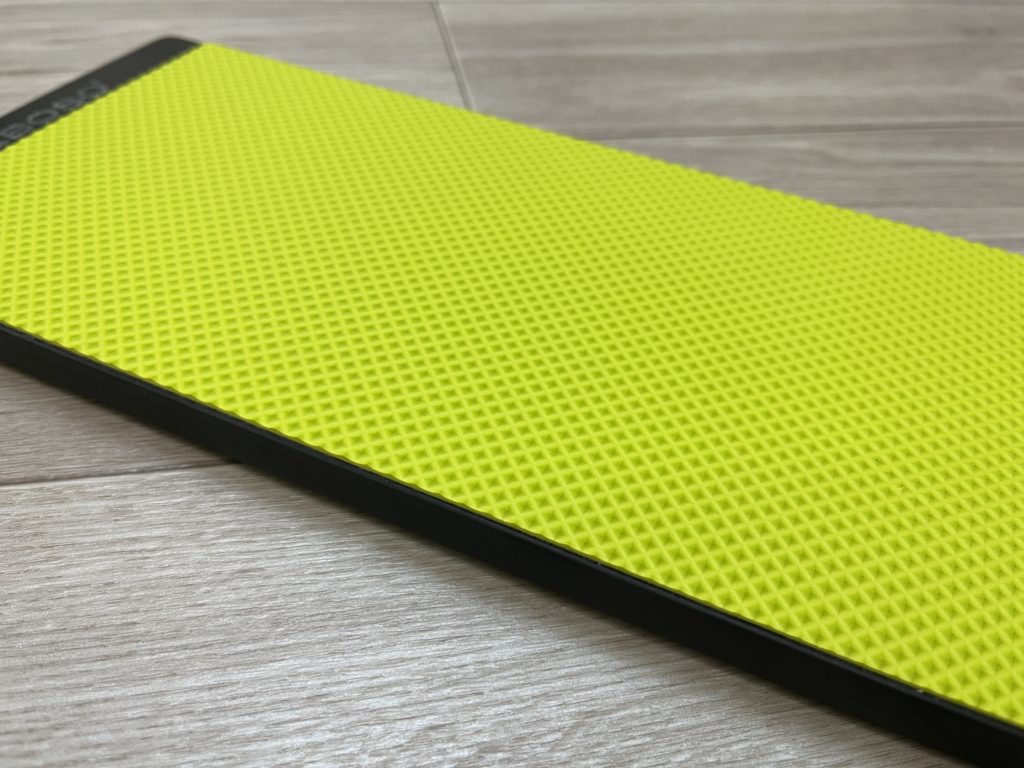 見ていただきたいのが、表面上の凹凸部分。テクスチャーと呼ばれるNaboso社独自の形状で、この凹凸があることで断続的に足の裏に刺激を入れることができます。