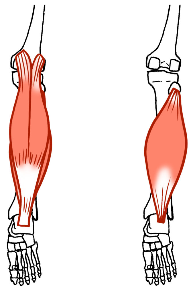 ヒラメ筋と腓腹筋、どちらも足首の動きには重要な筋肉で両方が正しく働くことで歩いたり、走ったりがスムーズになってくるのです。