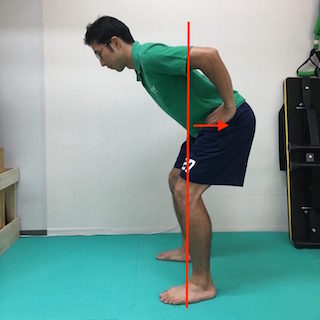 上半身が直立のままで、膝だけ前に出してしまうスクワット。