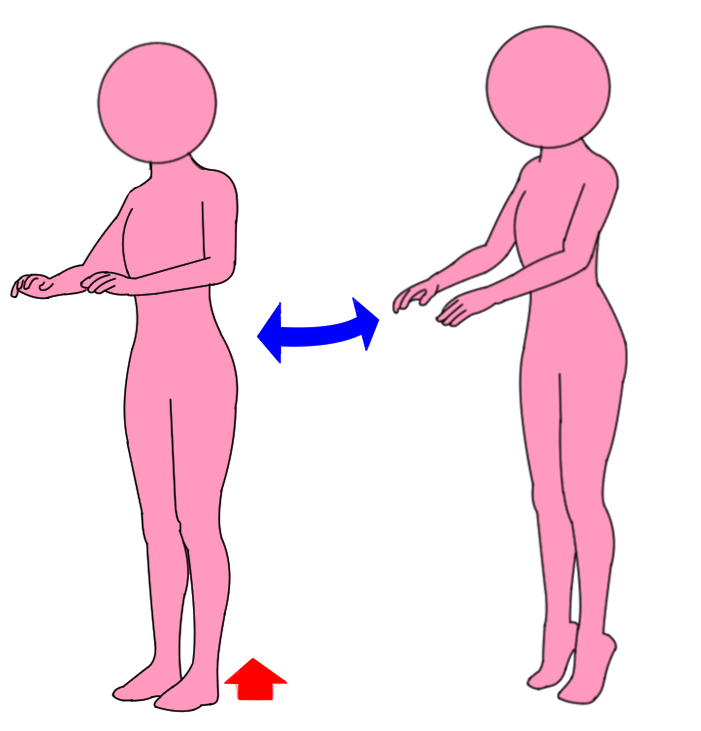 - 壁に向かって立ちます(手を伸ばした時に少し前のめりになる距離)
