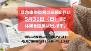 緊急事態宣言が発表されてから休業しておりましたが、本日より営業を再開します!